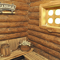 Парильная зона: банные шапки, сланцы, веники (2 штуки), ушат для веников, ковш. Комод в коридоре напротив парильной, предоставляются простыни и полотенца по количеству гостей.