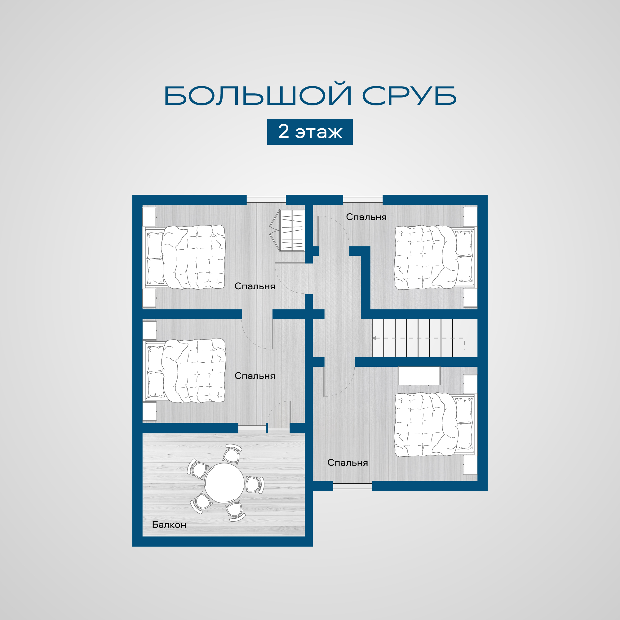 Второй этаж: 4 уютных спальных комнаты, просторная веранда.