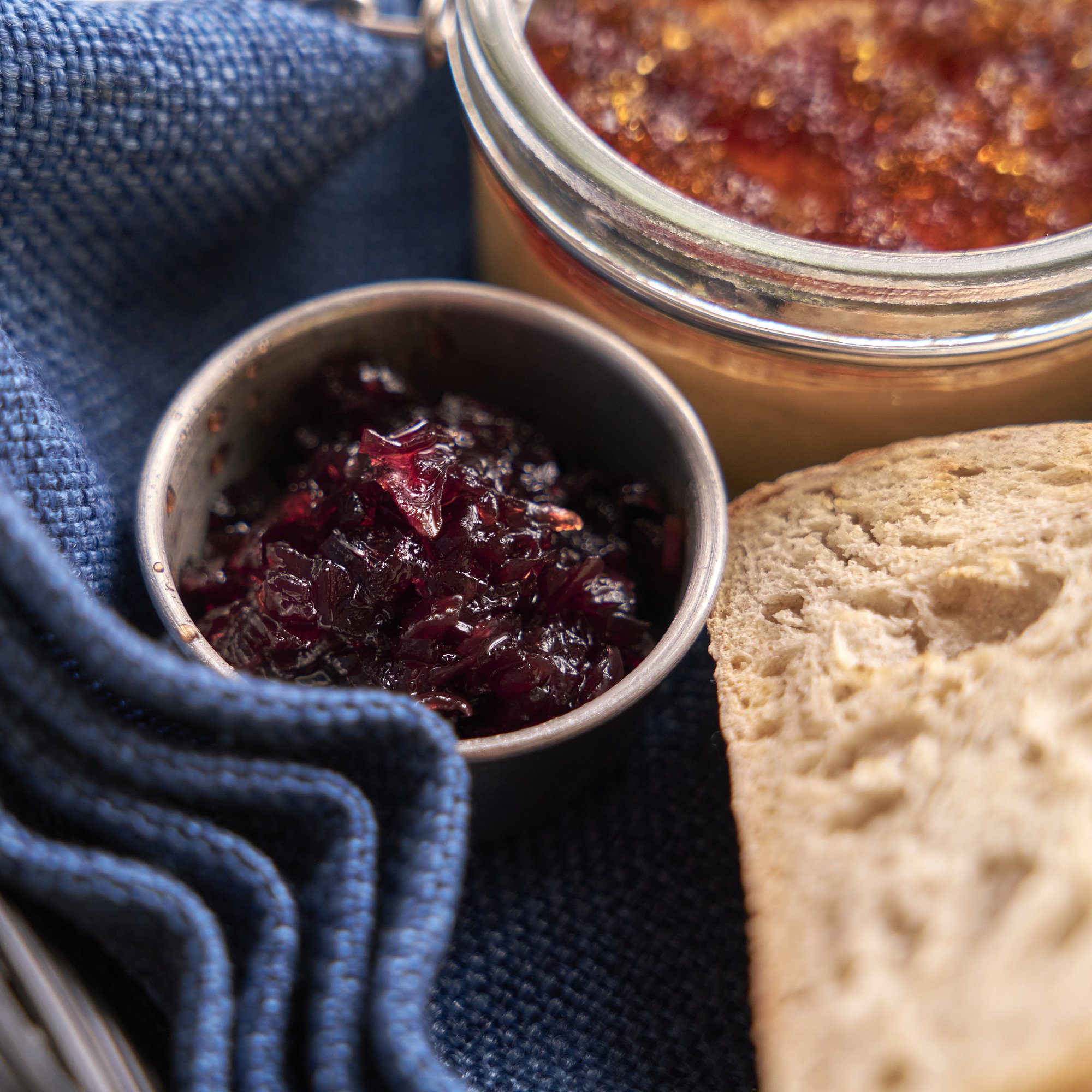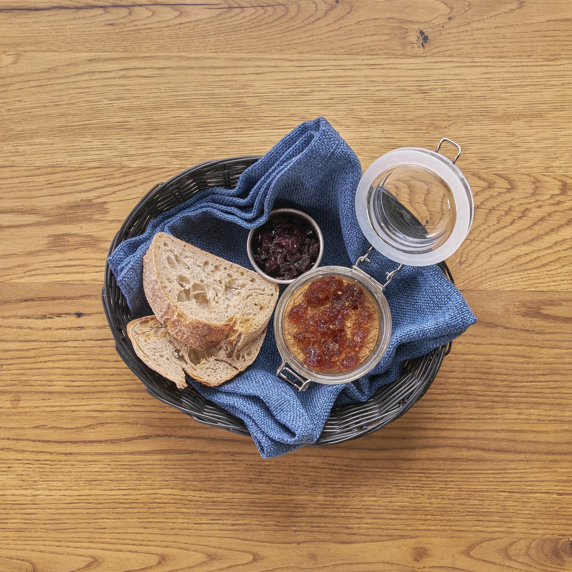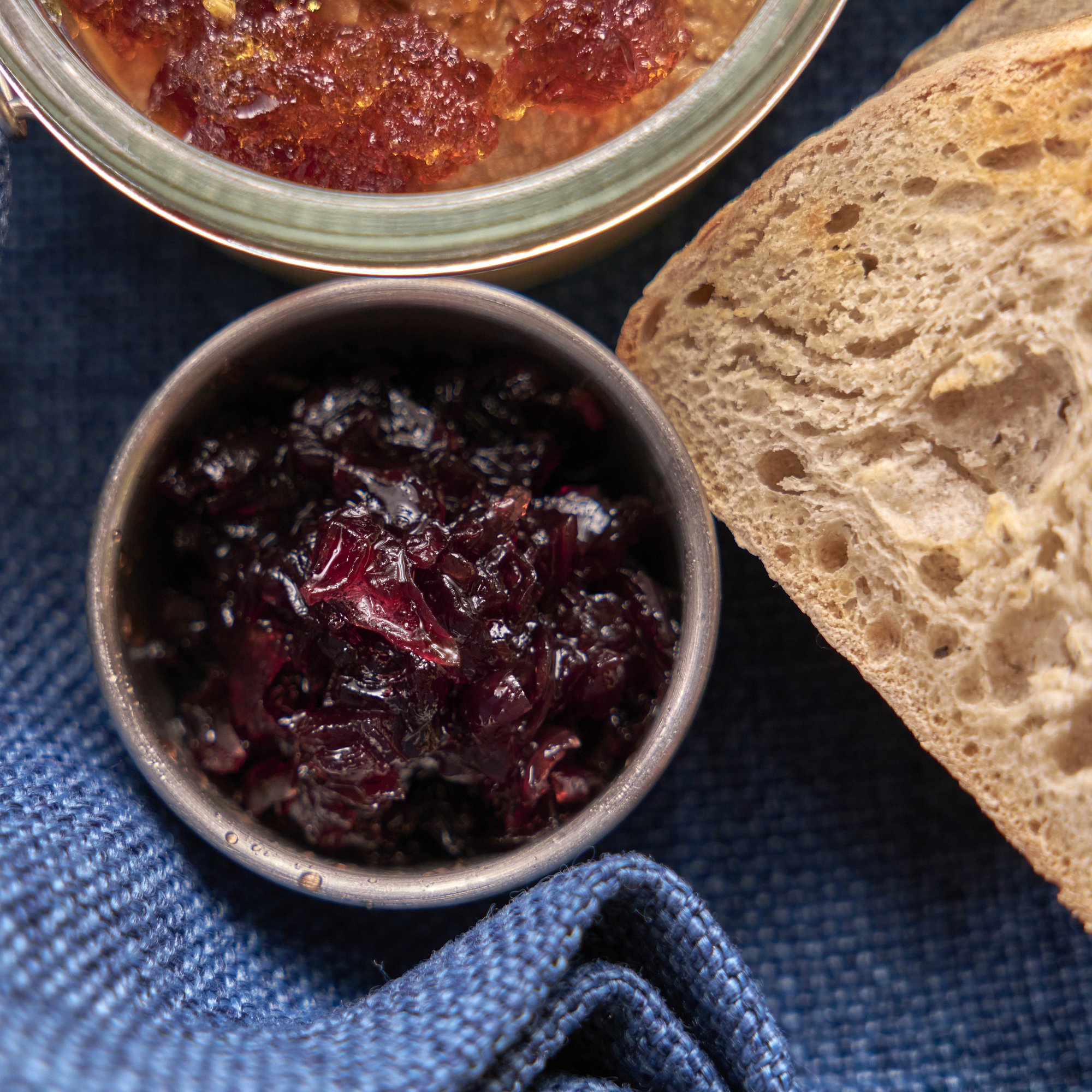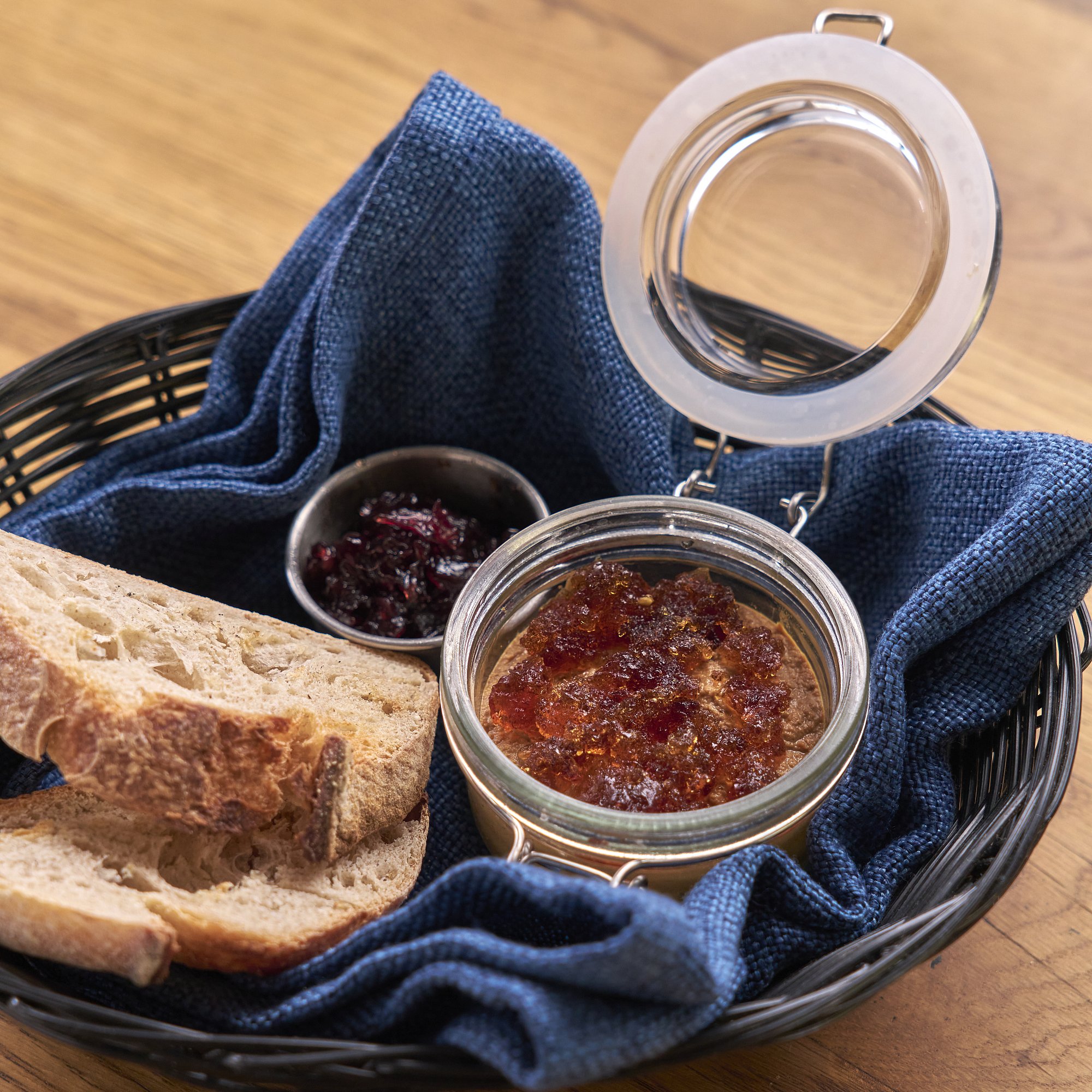 Воздушный, тающий паштет из печени, сердца и легкого поросенка. Готовится на сливках с травами и мускатным орехом для идеальной кремовой текстуры. В комплекте — пикантный конфитюр из красного лука на квасе, который подчеркивает вкус паштета. Идеален с хрустящим хлебом.