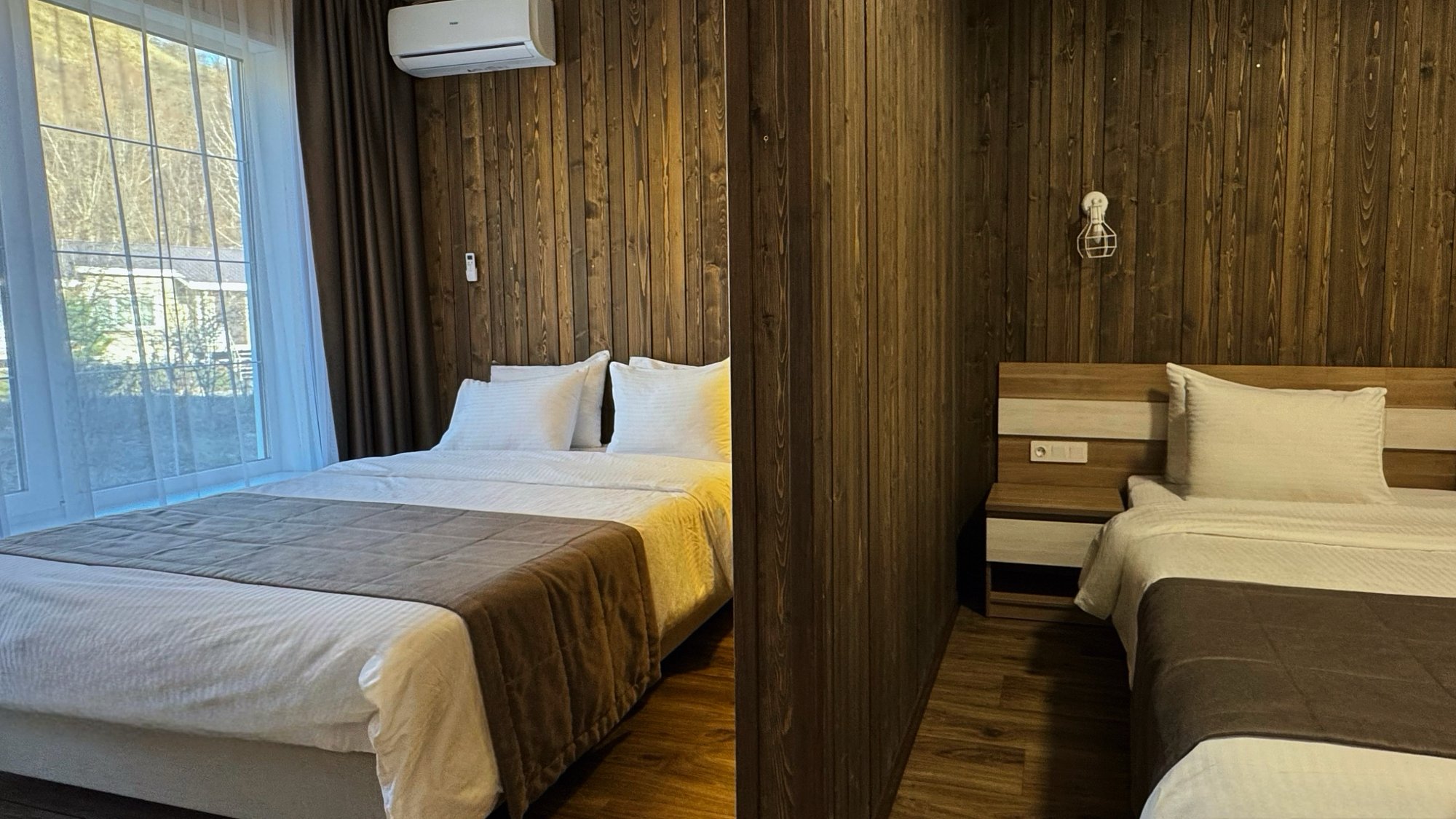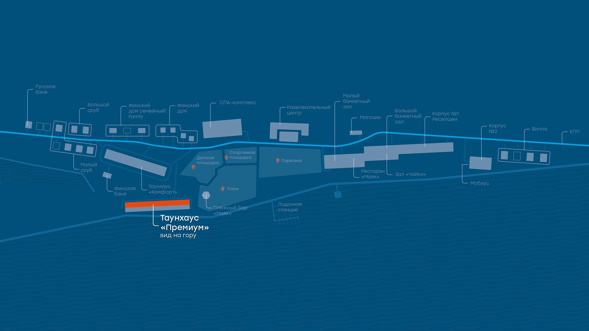 Таунхаусы – объединенные в единую линейку дома, каждый таунхаус имеет индивидуальный вход, веранду и мангал. Четырехкомнатный таунхаус Премиум состоит из трех спален и кухни.