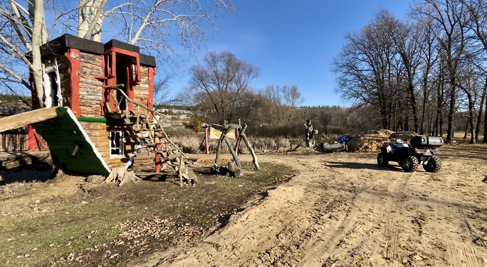 Постепенно дорога становится сложнее, и начинается фрирайд по лесу с брёвнами и канавами для уровня «средний», или просто лесная дорога для «лёгкого» уровня.