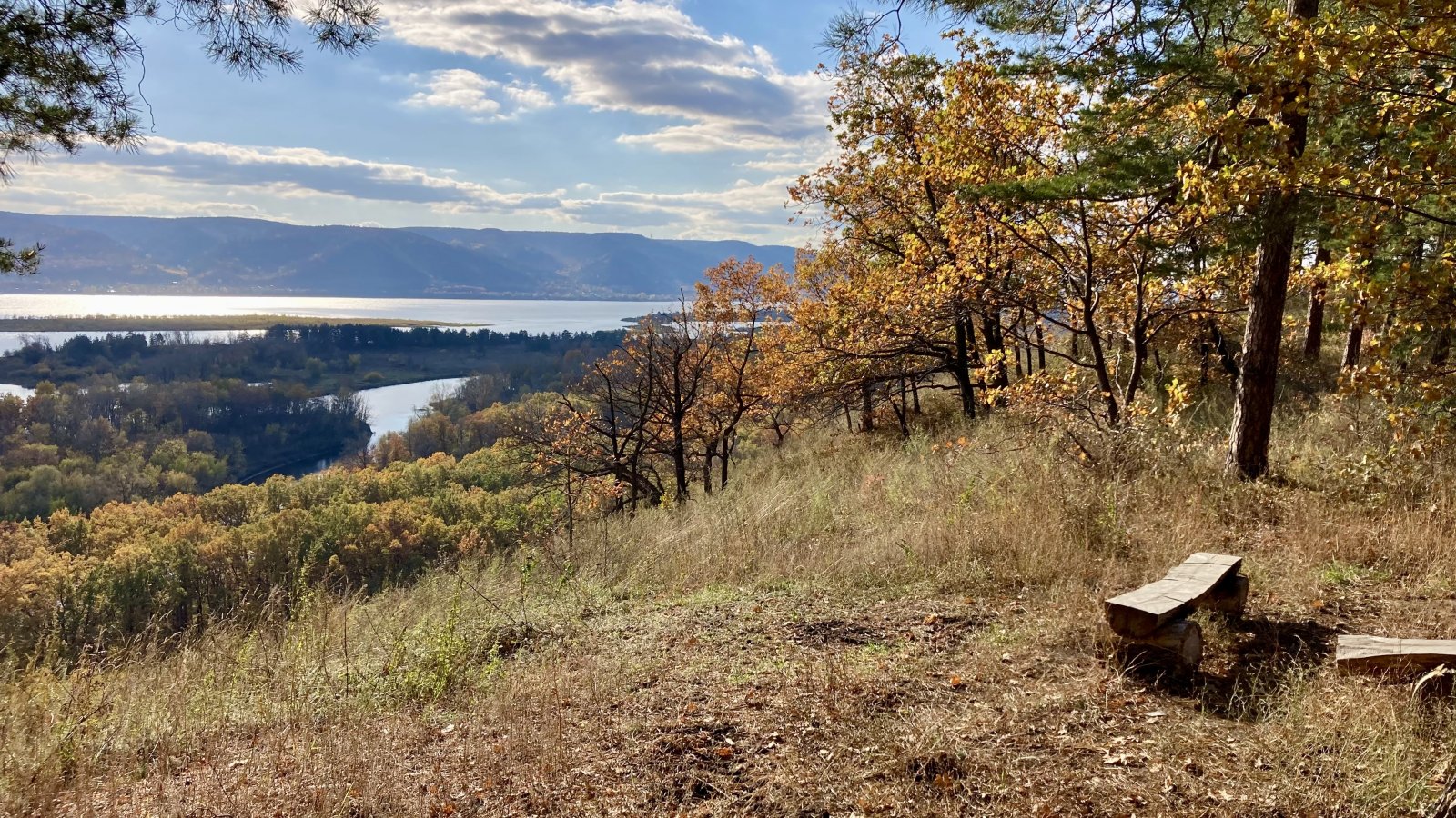 2 часть: выезжаем на видовую площадку «лавочки» с фантастическим видом на Жигули и Волгу с высоты птичьего полёта.