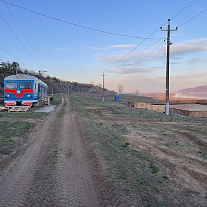 Большая остановка, можно размяться, подкрепиться, полюбоваться фантастическим видом в бинокль (напротив гора Стрельная, под нами о. Середыш, Копылово, Фёдоровка), сделать селфи, посетить фото выставку под открытым небом и даже посидеть в кресле машиниста электрички