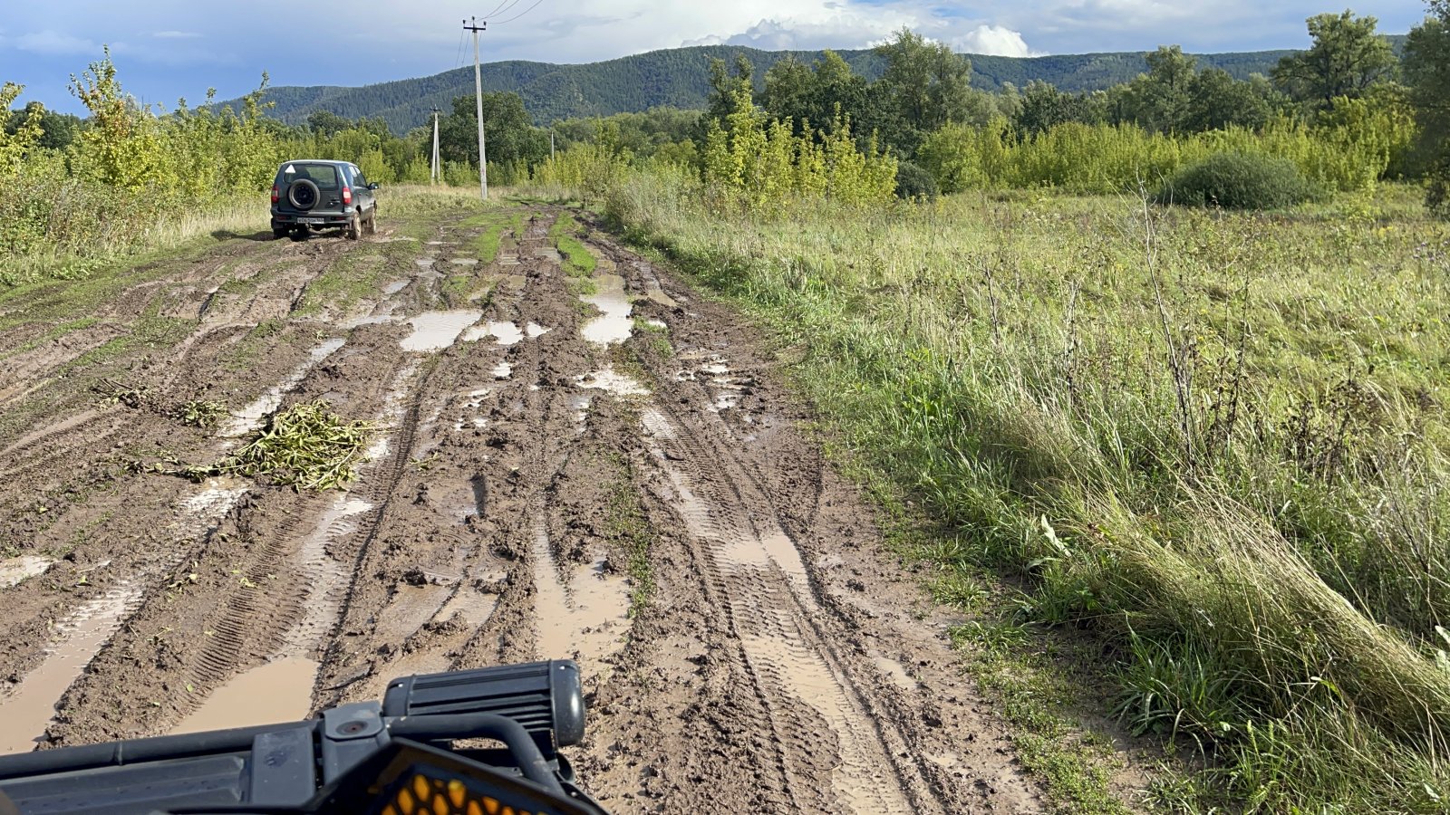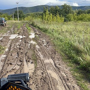 Дальше нас ждёт брод, который в зависимости от сезона меняется от глубокого ручья до серьёзного болота, и дорога от просто кочковатой до серьёзно грязной (от сезона).