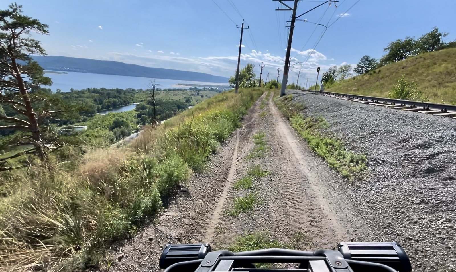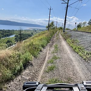 Вскоре целая «связка» приключений: мега-тоннель (в 10 раз длиннее, чем в коротких турах), несколько глубоких оврагов с крутыми спусками/подъёмами, скоростной участок, фрирайд по лесу, наша фирменная дорожка по краю обрыва с захватывающим дух видом, и вот мы уже на «Волжской жемчужине».